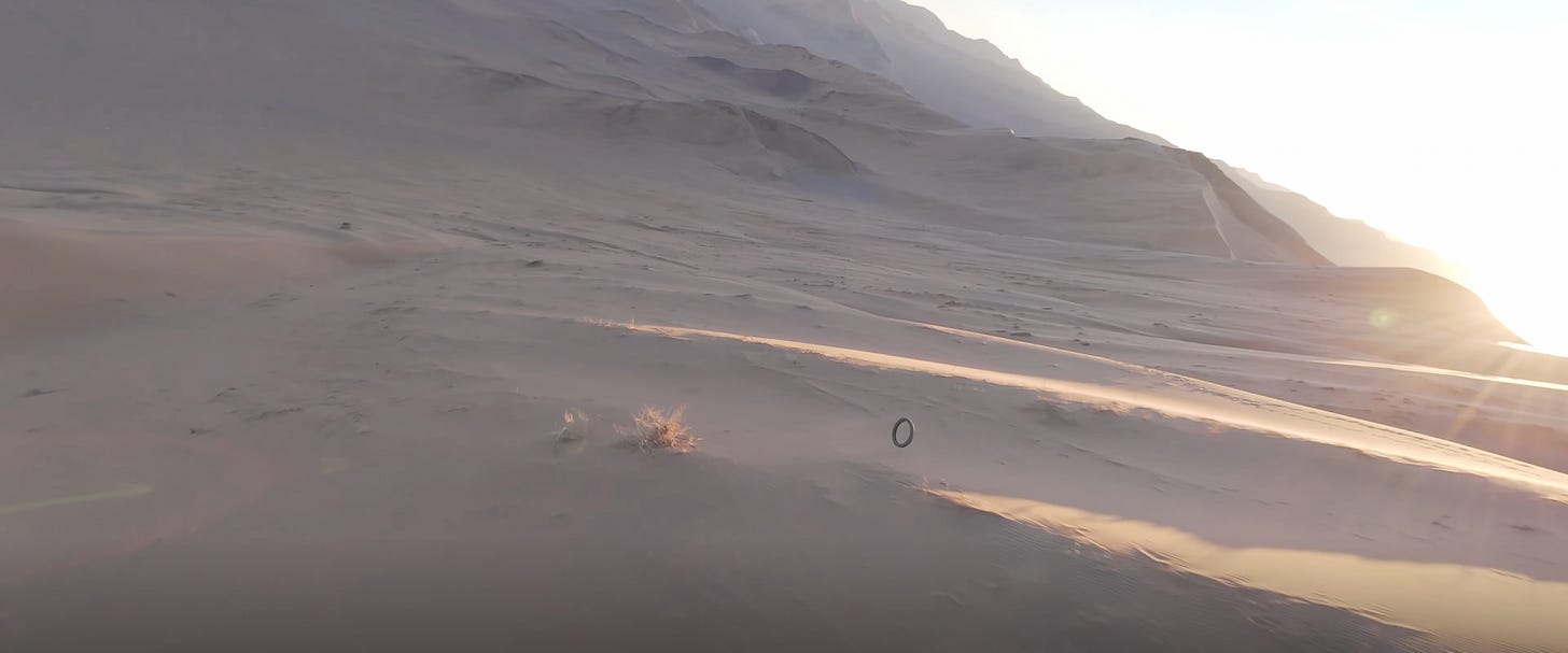 Een episch filmpje van een rubberen band die van een van de grootste duingebieden af rolt